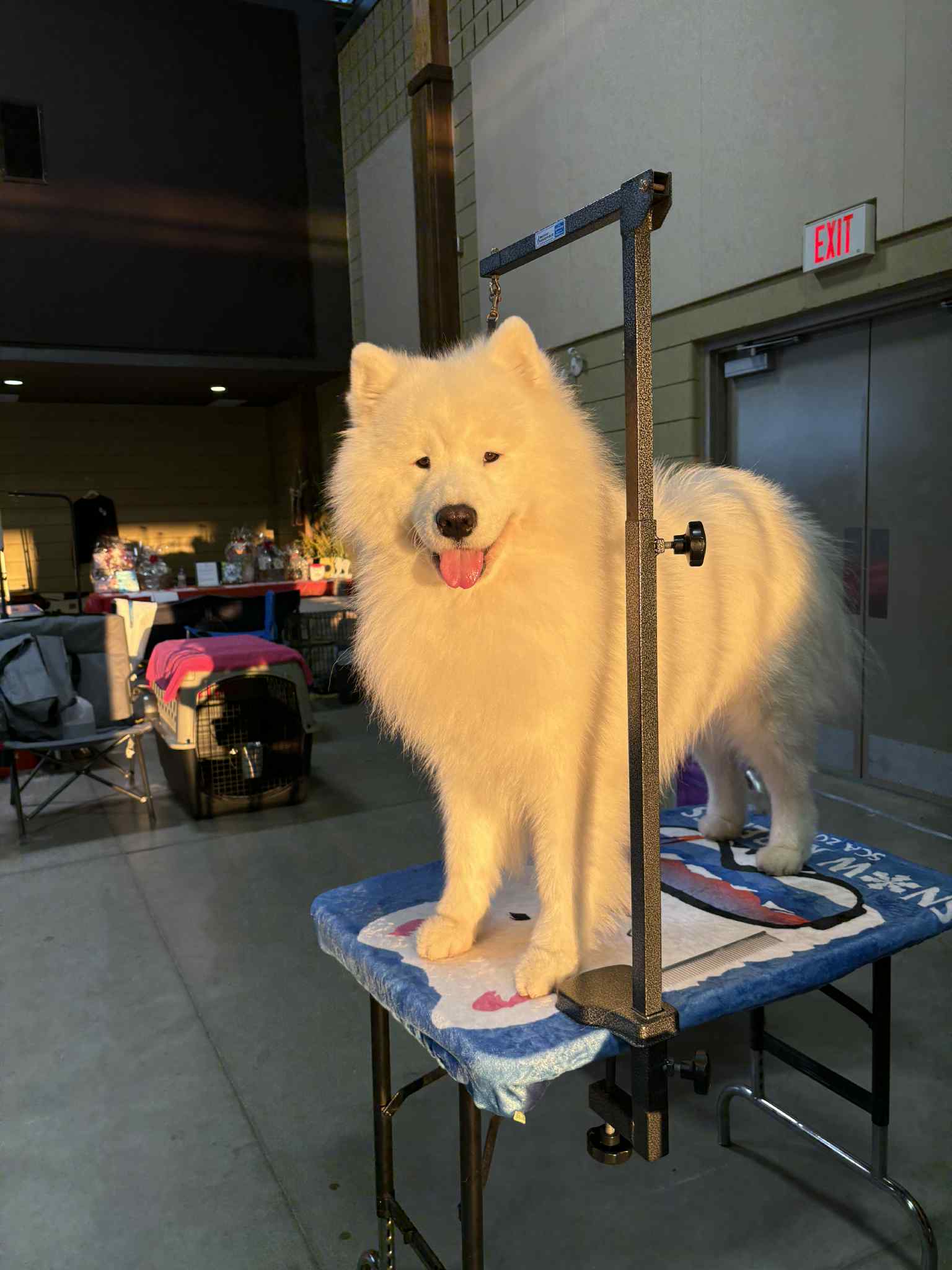 • Free grooming is limited, crates must be stacked, one grooming table per exhibitor and no power.