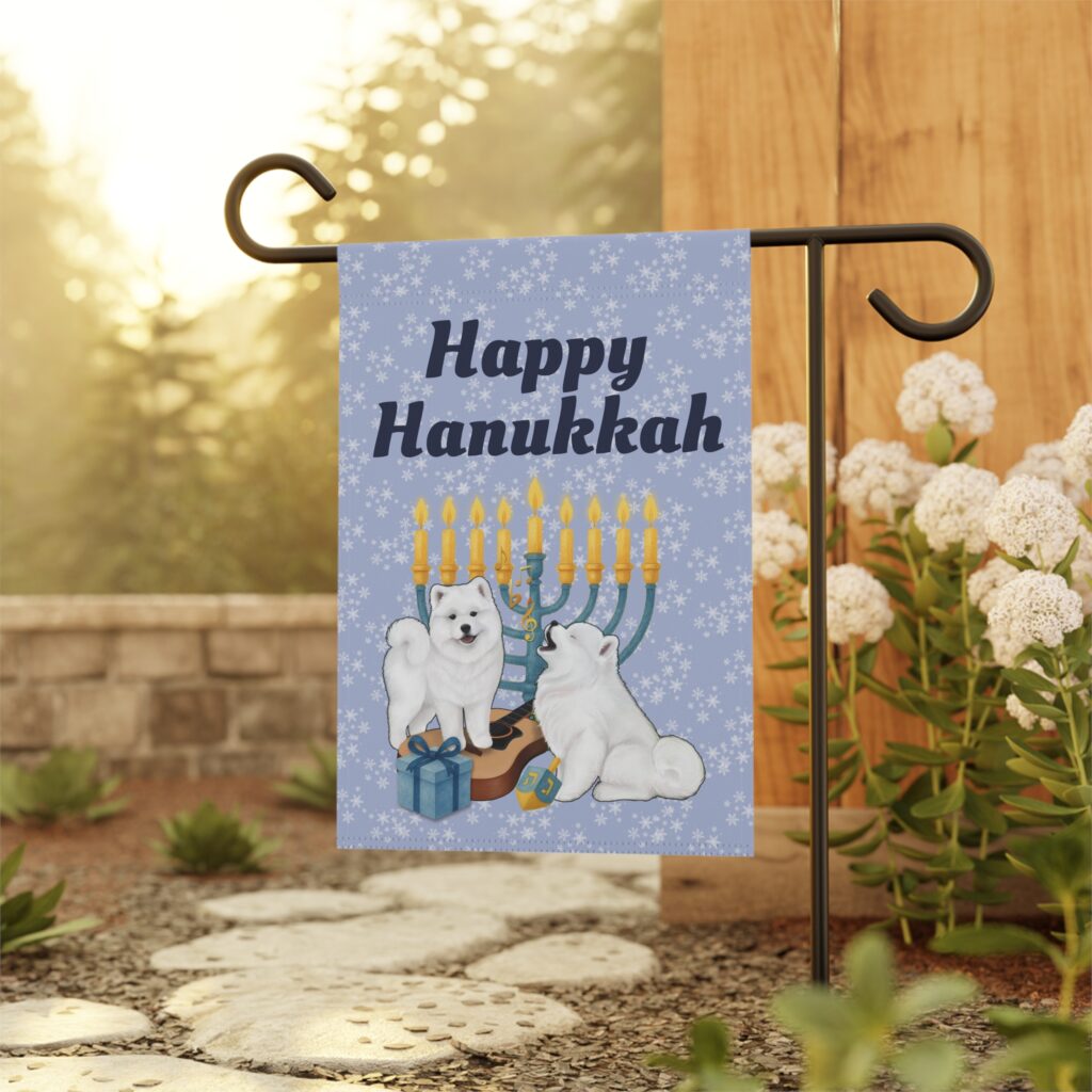 Price range: $15.00 through $30.00Happy Hanukkah Garden Flag — Silver Grey — (pole/hooks not included)
