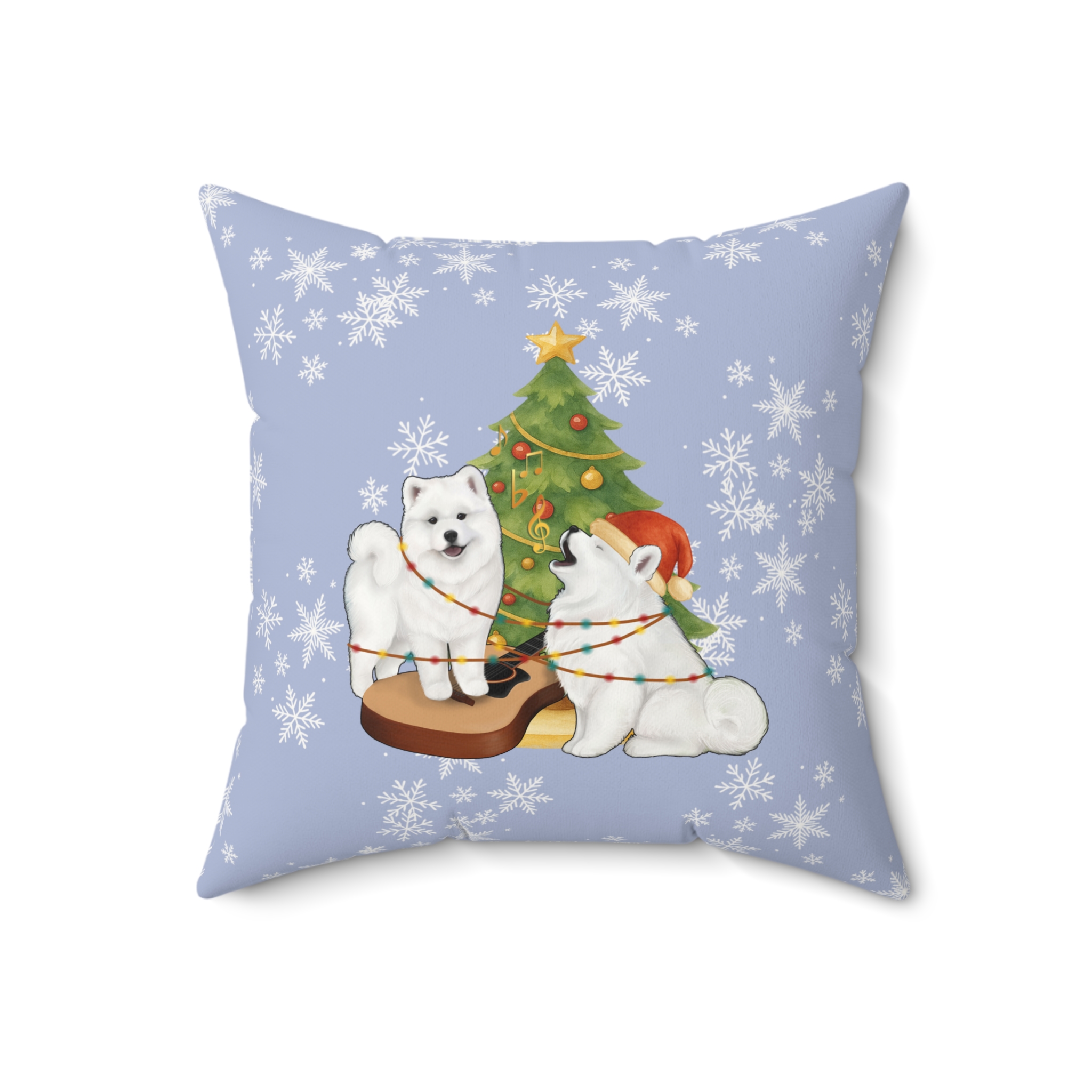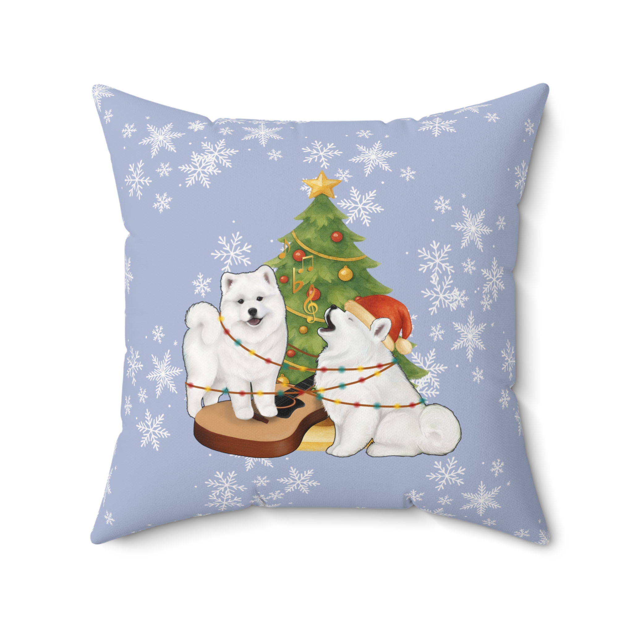 Christmas Samoyed Faux Suede Square Pillow- Ice Blue