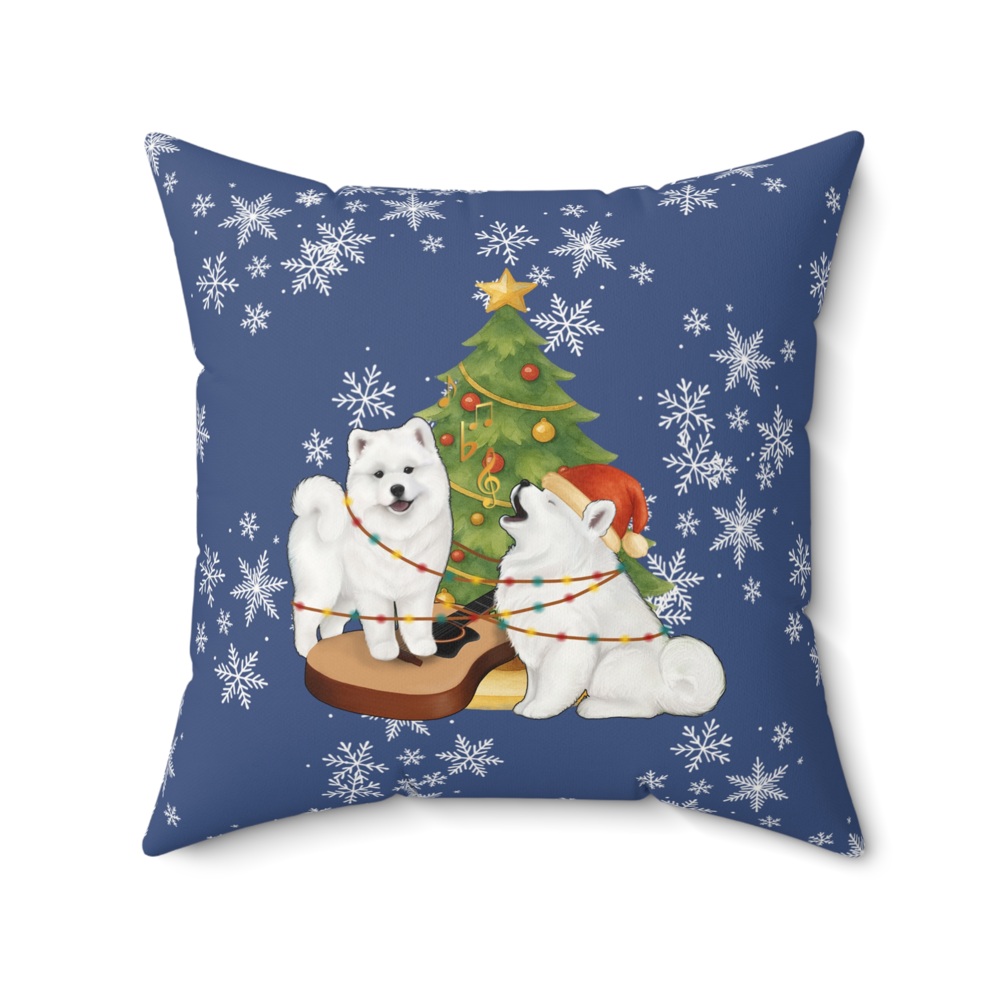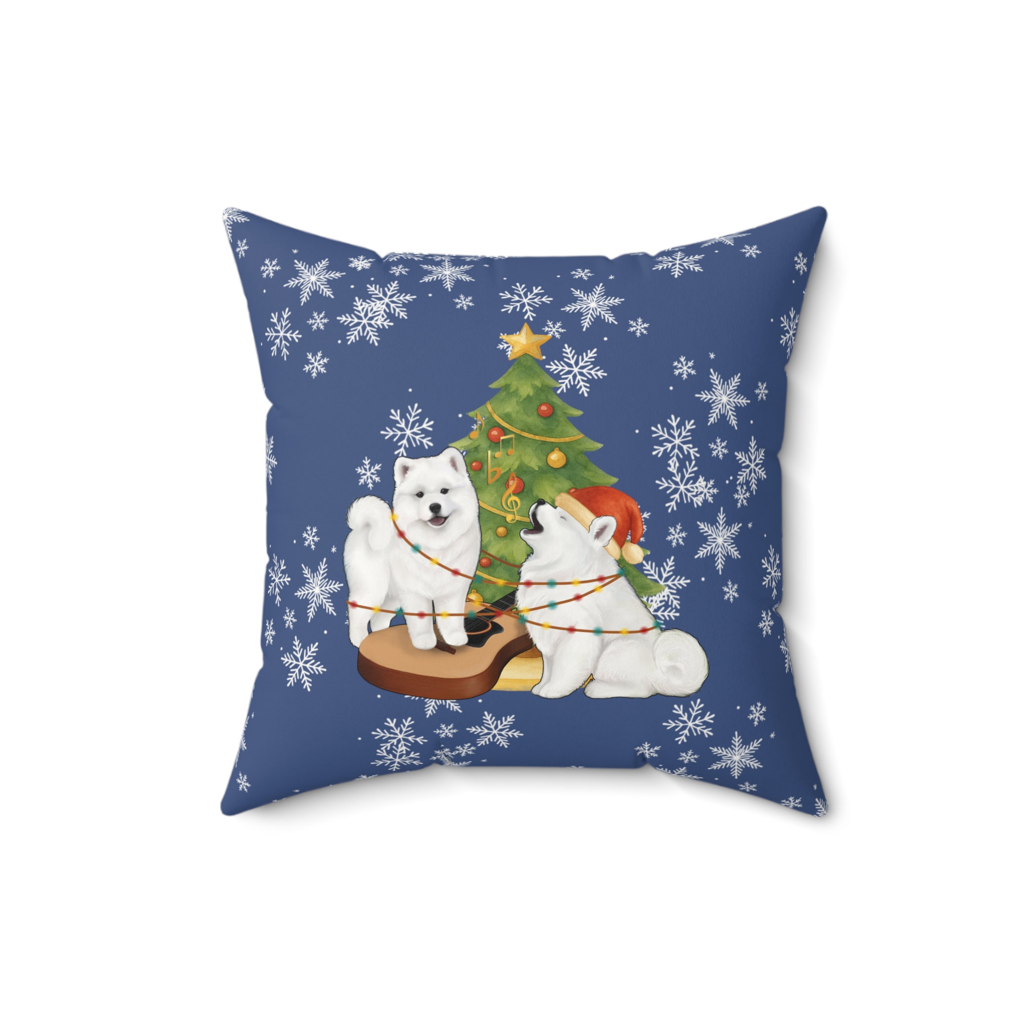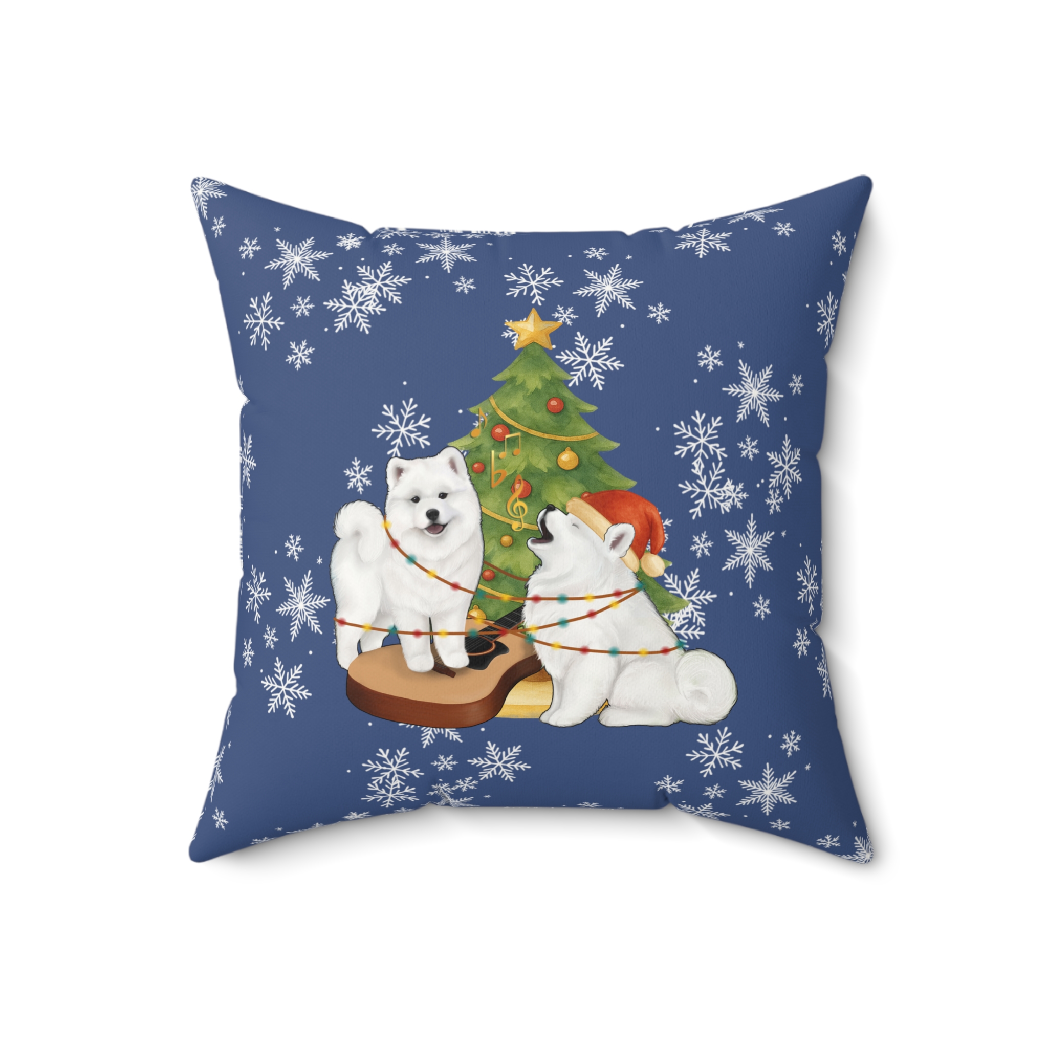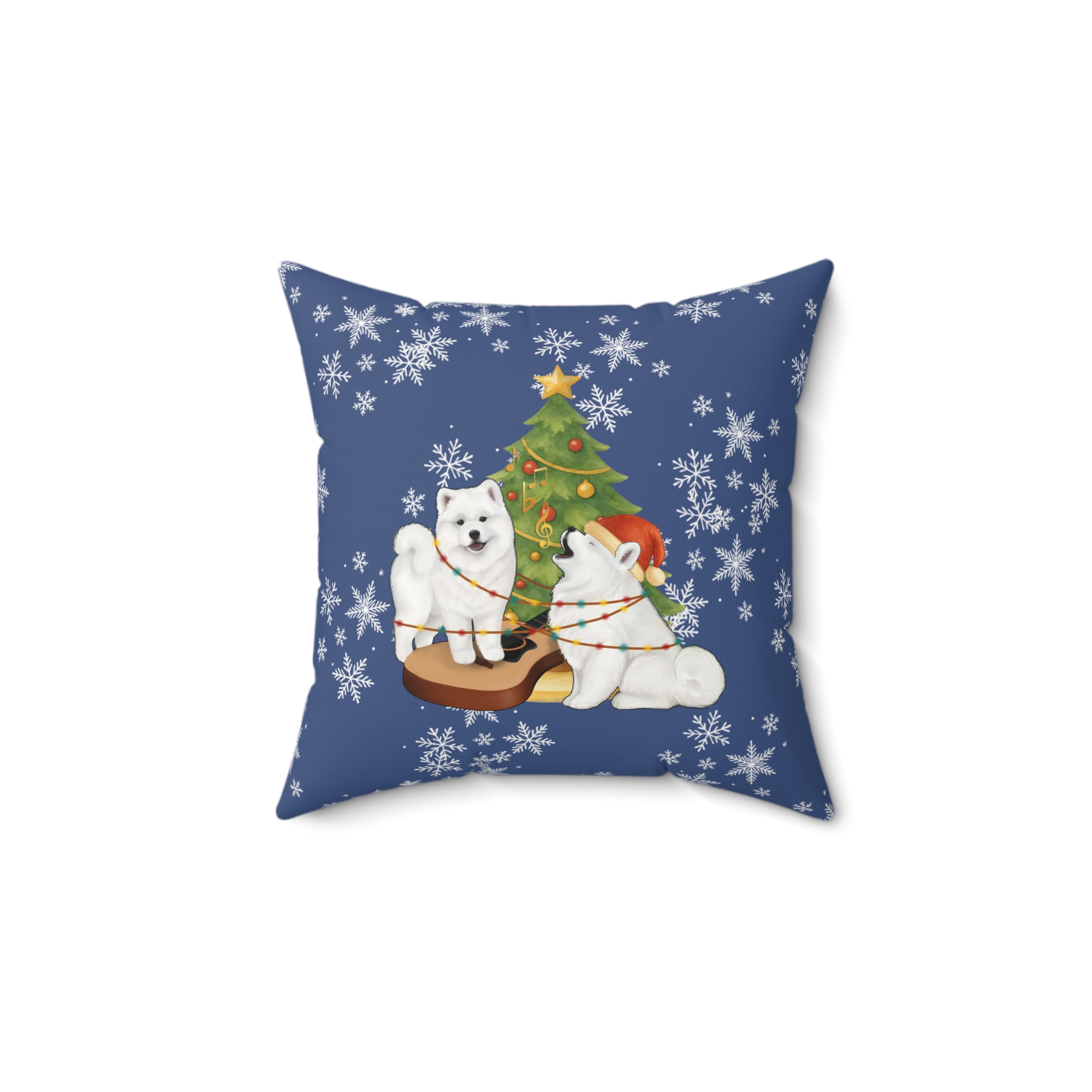 Christmas Samoyed Faux Suede Square Pillow- Winter Blue
