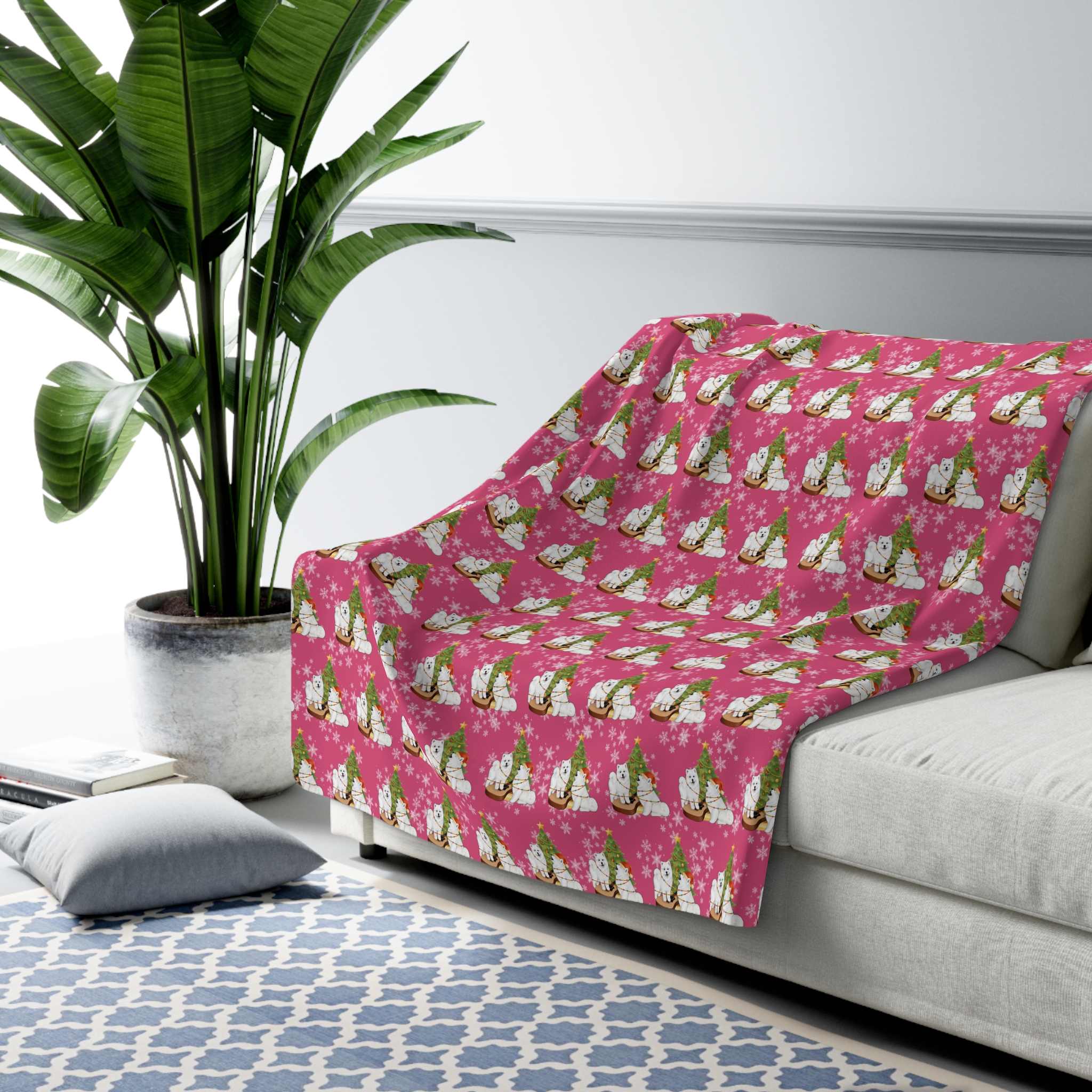 The design feels nostalgic and festive without shouting for attention. It settles into quiet holiday rituals, or laid across the back of a sofa to cheer a neutral space. The plush backside cushions and soothes; the printed face adds personality. Available in two sizes, it adapts to solo lounging or shared cuddles.