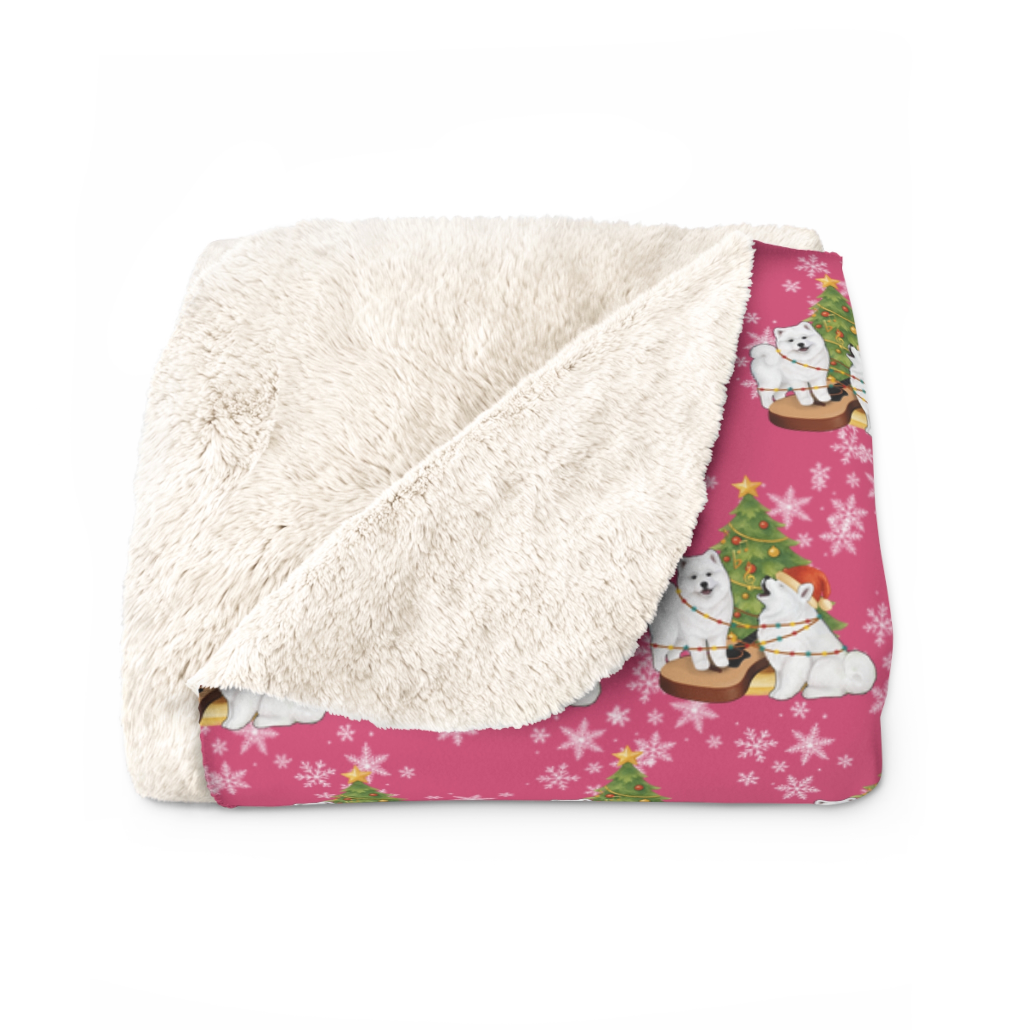 A plush sherpa fleece blanket wrapped in warm, holiday energy. The front shows a repeating pattern of a cozy winter vignette. Flip it over to a thick, velvety cream sherpa that invites you to curl up with a book, a cup of cocoa, or a movie night with someone you love. It’s lightweight to carry between rooms but dense enough (3 mm polyester) to hold comforting heat on chilly evenings. Thoughtfully hemmed for strength and finished to meet safety standards, this blanket brings a tactile, homey layer to living rooms, guest rooms, or holiday travel.