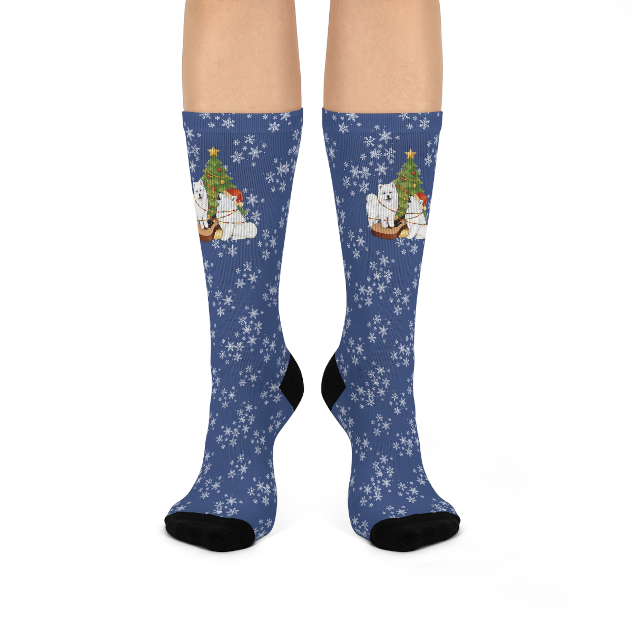 Soft, cushioned crew socks that bring a quiet winter evening to your feet. The fabric stretches snugly without squeezing, and the padded sole keeps toes comfortable during long mornings, brisk walks, or relaxed nights by the fire. These socks slip easily into everyday rotation for anyone who likes a bit of seasonal charm threaded into daily life.