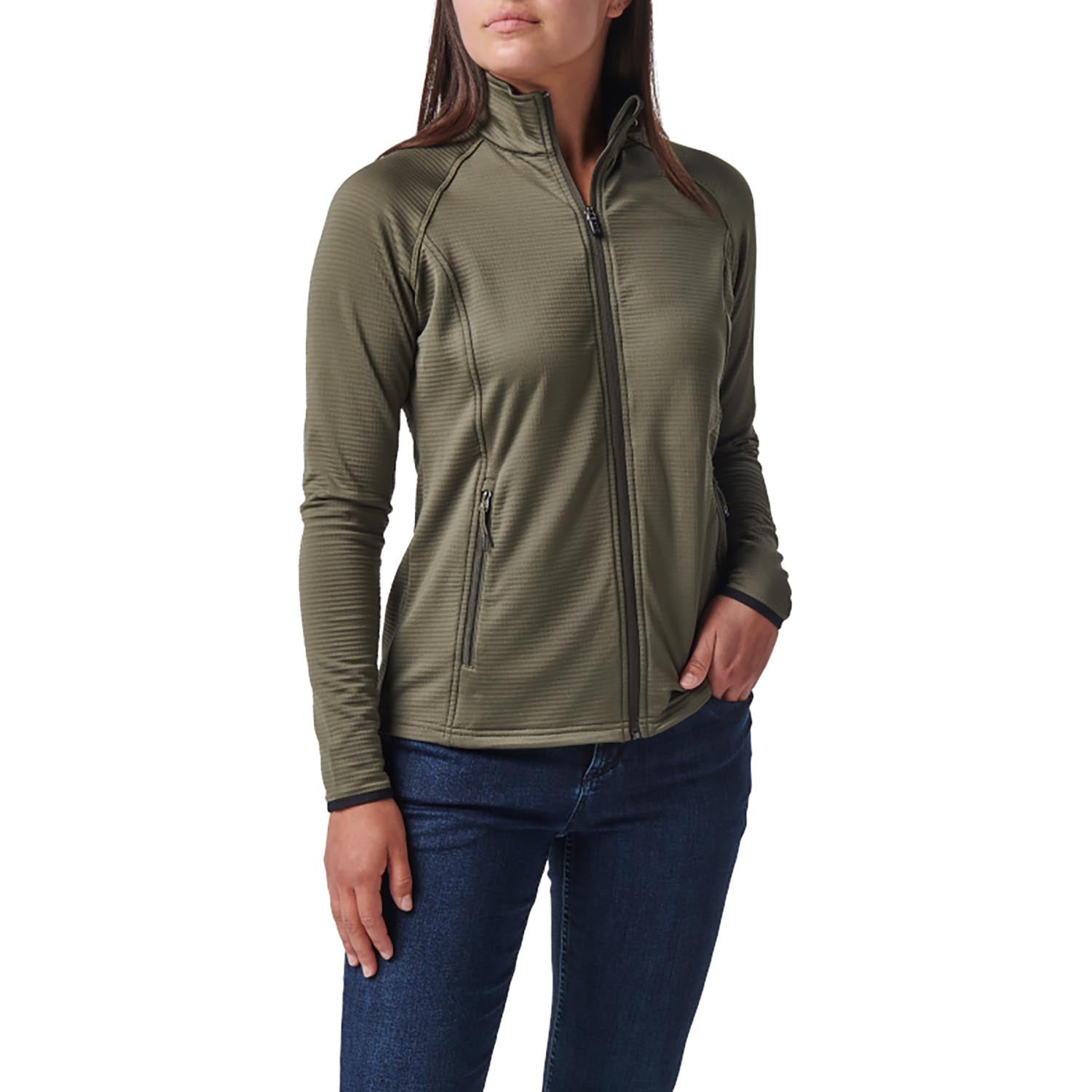 - Hand zipper pockets with polyester dipped cord pullers_